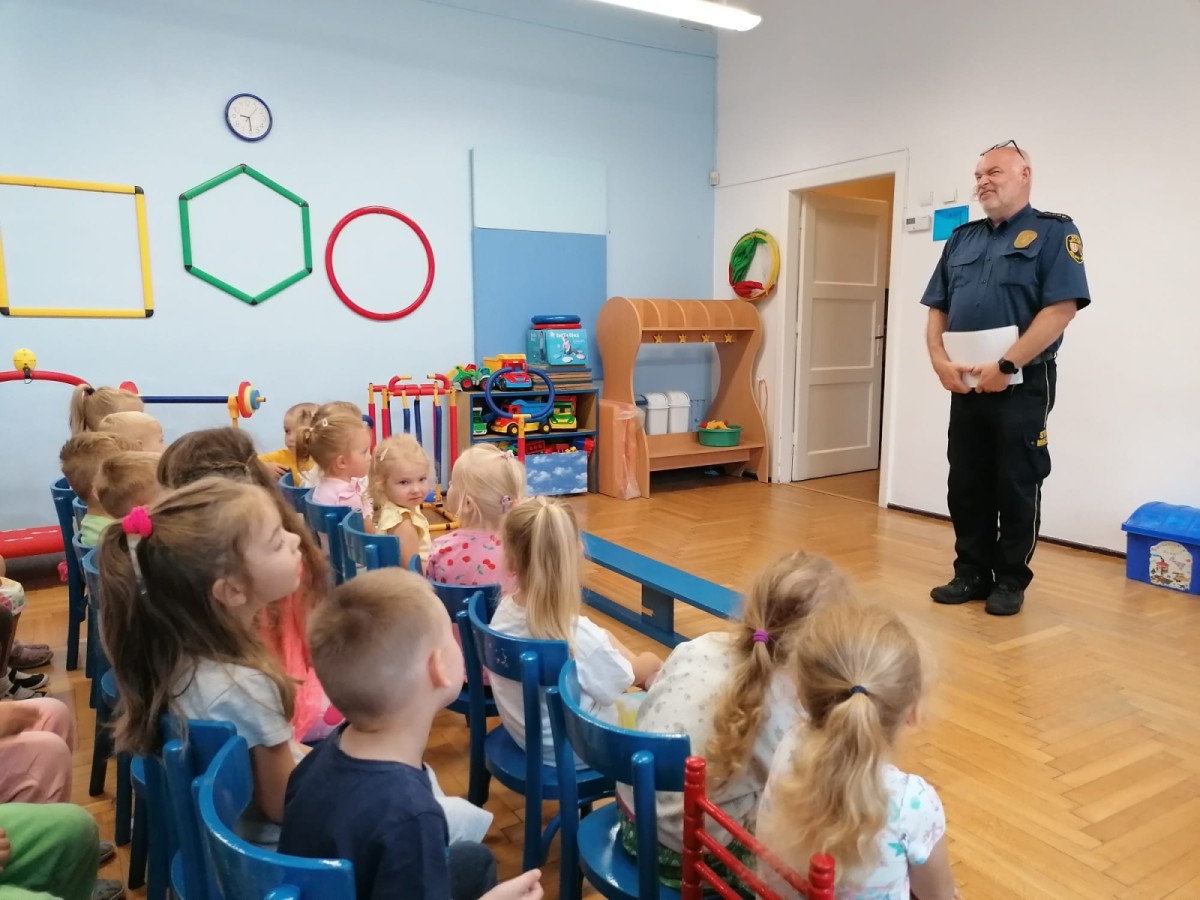 W miniony piątek nasze przedszkole odwiedzili Strażacy Miejscy by przeprowadzić prelekcje jak bezpiecznie spędzać wakacje.