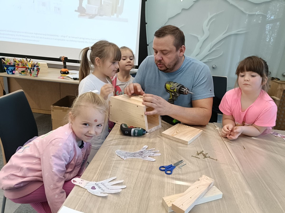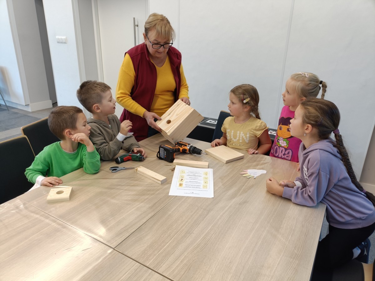 W miniony czwartek Starszaki wybrały się do Centrum Edukacji Ekologicznej w Cygańskim Lesie by poznać świat ptaków. Poznaliśmy ich budowę ciała, charakterystyczne zachowania, ptaki, które migrują i sposoby na ich ochronę. Nie zabrakło działań praktycznych, których efektem były własnoręcznie wykonane przez przedszkolaki budki lęgowe. Na zakończenie warsztatów wybraliśmy się do ogrodu na zabawę i obserwację ptaków przez lornetki.