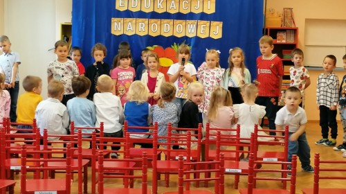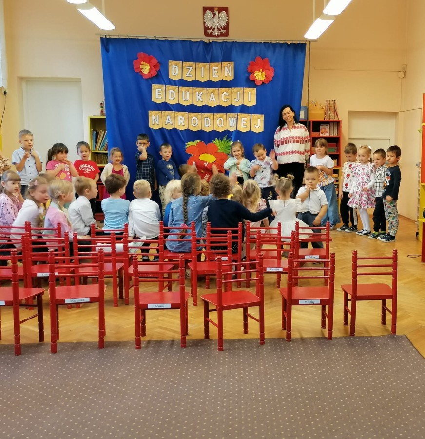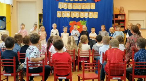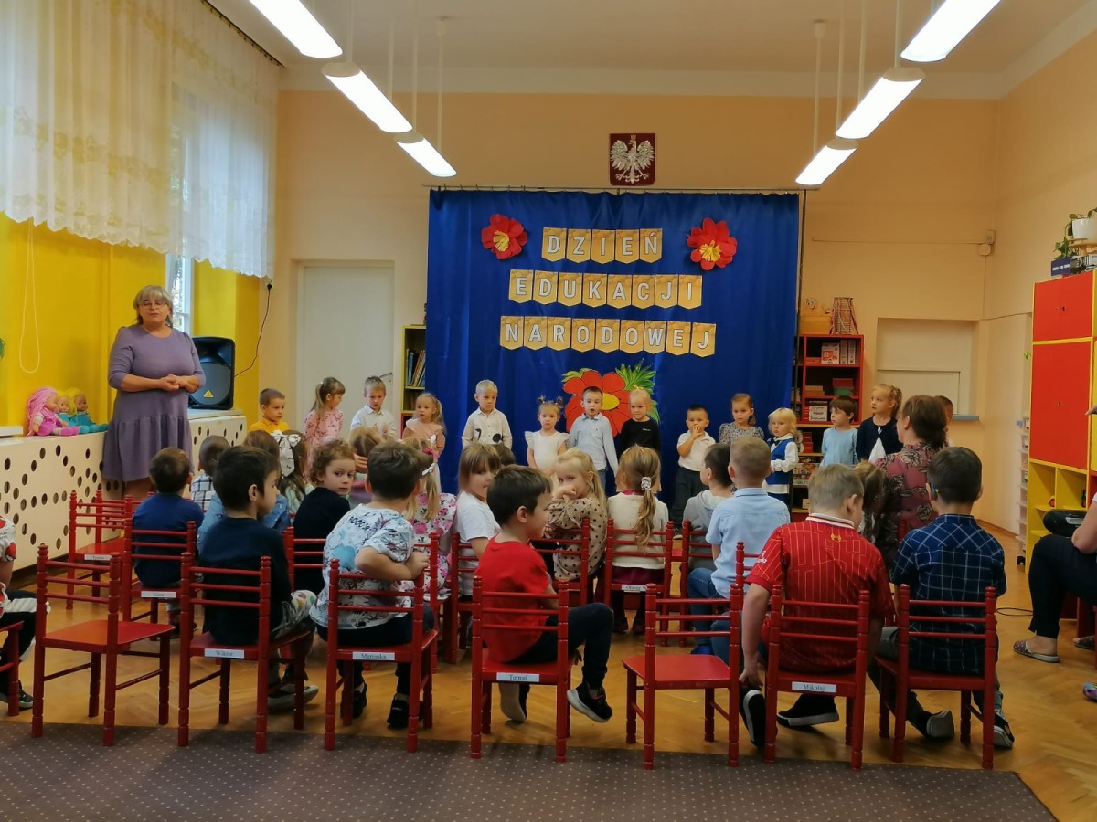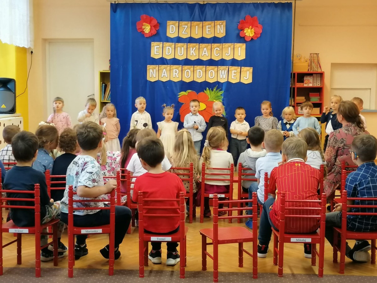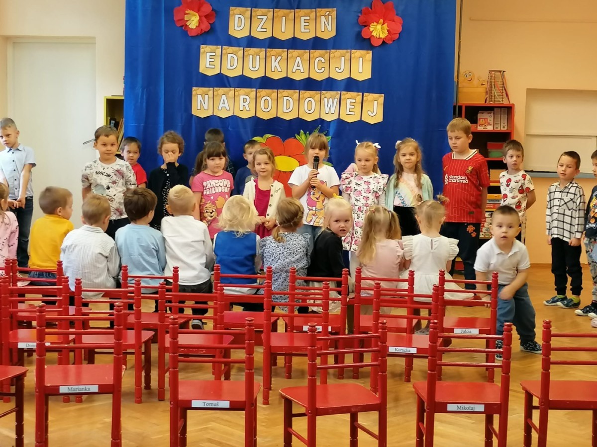 Dzień Edukacji Narodowej to szczególny dzień dla wszystkich pracowników naszego przedszkola, którzy dbają by dzieci czuły się w przedszkolu dobrze, by miło i bezpiecznie spędzały tu czas. Z okazji Dnia Nauczyciela przedszkolaki chciały podziękować swoim ukochanym paniom i pracownikom przedszkola za trud włożony w ich wychowanie. Dzieci zaprezentowały przepiękny program artystyczny, w którym nie zabrakło wierszy, życzeń i piosenek. Przedszkolaki w ten sposób podziękowały za opiekę, wychowanie, naukę, troskliwe ramiona, dobre rady, czyste sale, wszelkie naprawy i smaczne posiłki.