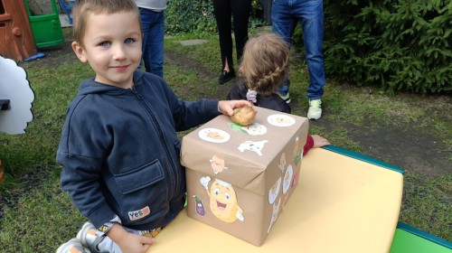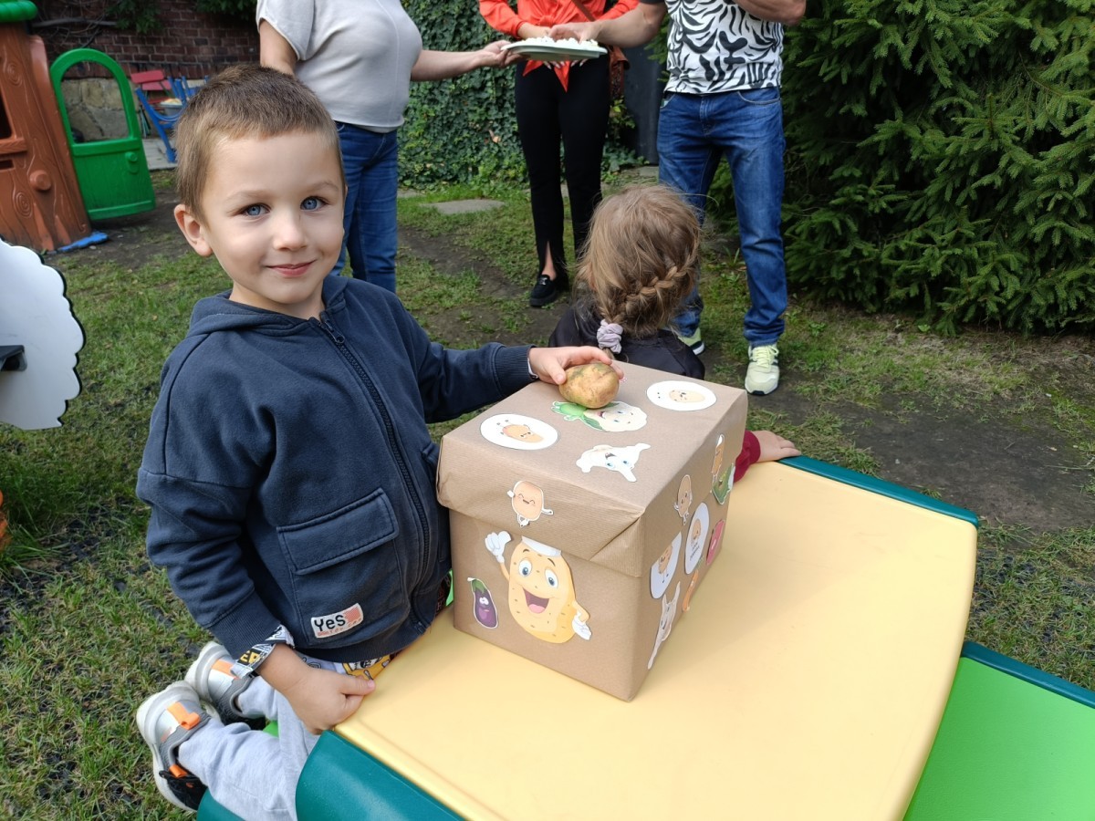 Dzień Ziemniaka w przedszkolu to okazja do edukacyjnej i radosnej zabawy, która integruje dzieci i rodziców poprzez aktywności związane z tym popularnym warzywem. Nasze święto ziemniaka odbyło się w ogrodzie przedszkolnym, nie zabrakło pysznych ziemniaczanych potraw takich jak: duszonki, zupa ziemniaczana czy poznańskie pyry z gzikiem. Rodzice wraz z dziećmi mogli uczestniczyć w grach i zabawach sportowych takich jak rzut ziemniakiem do celu czy slalom z ziemniakiem na łyżce.
