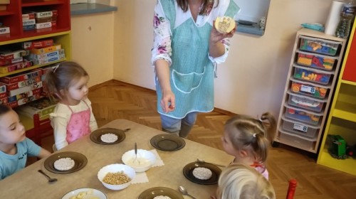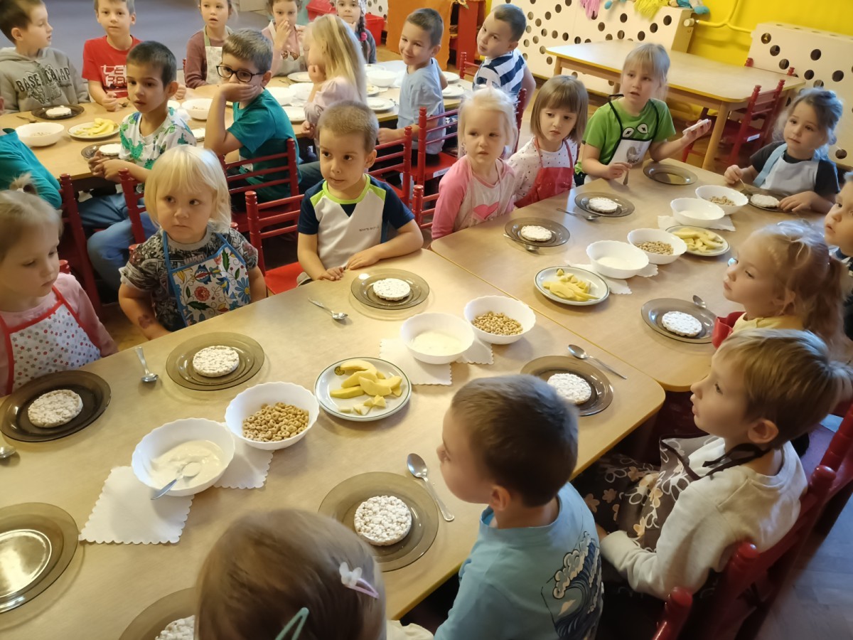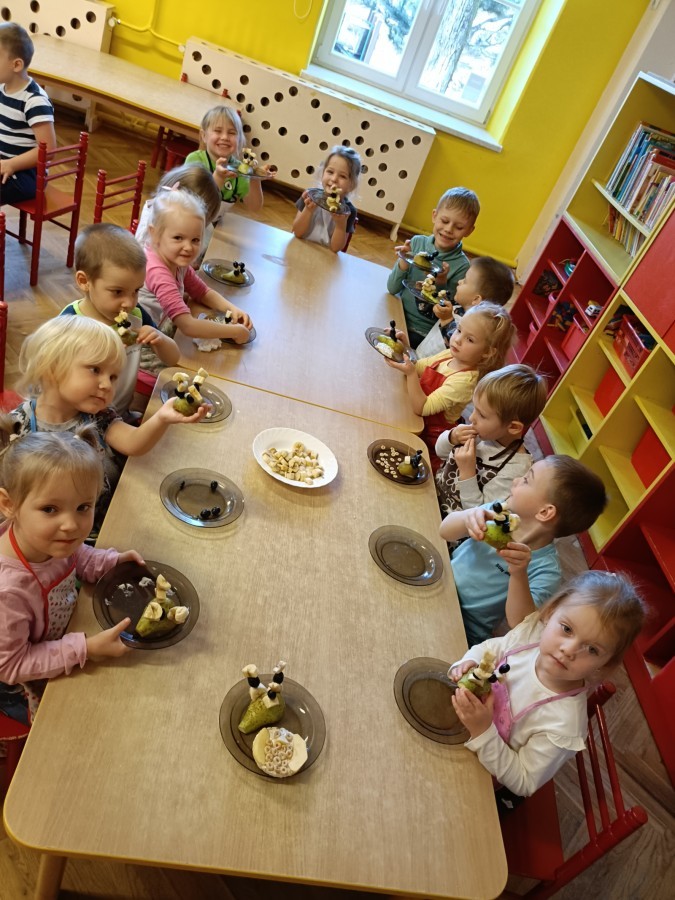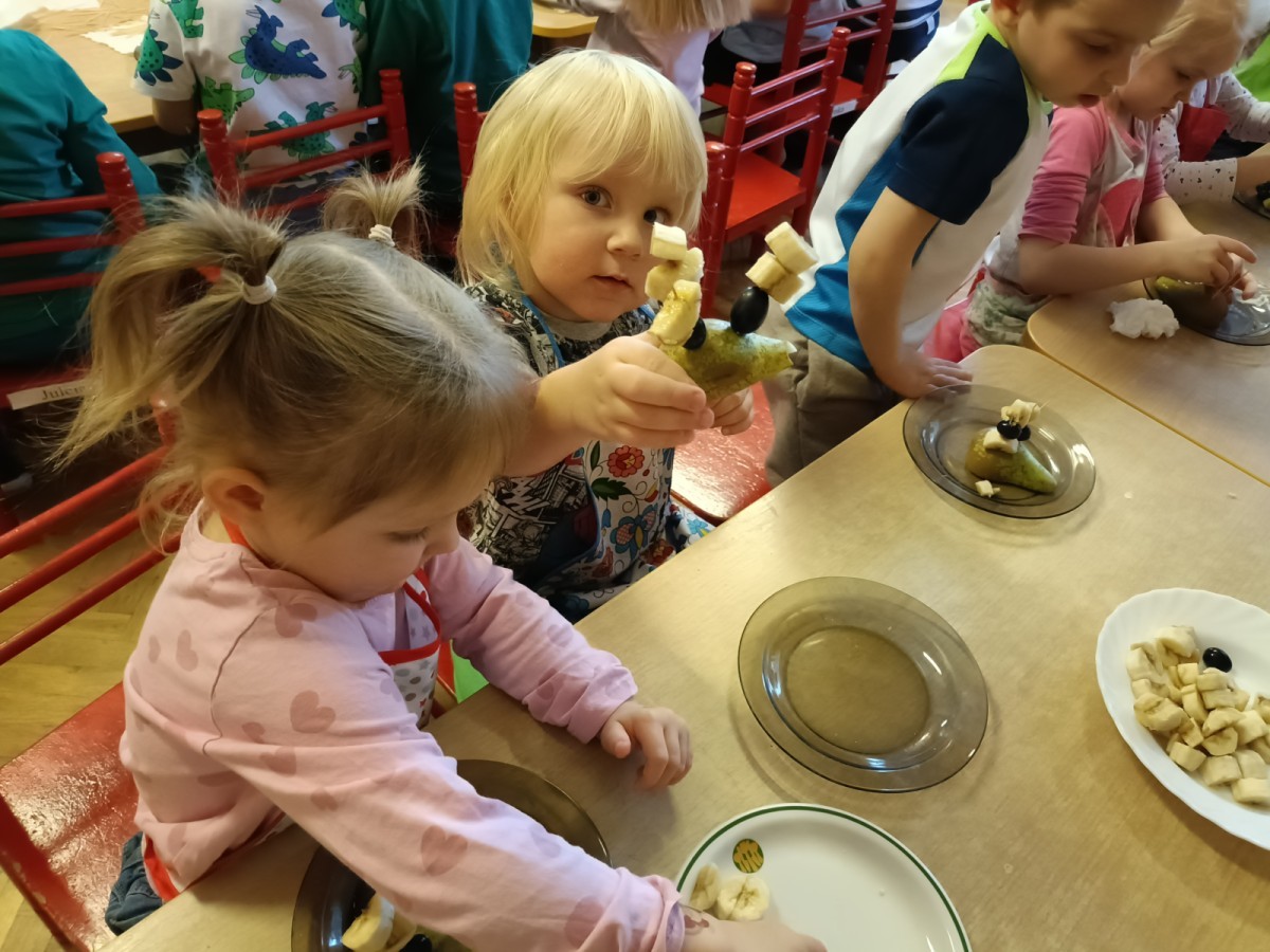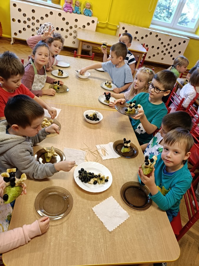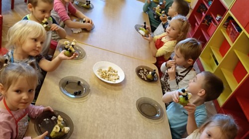 Nasze przedszkolaki zawsze z radością przygotowują smaczne i zdrowe przekąski. Tym razem inspiracją były jesienne zwierzęta: sowa i jeż.