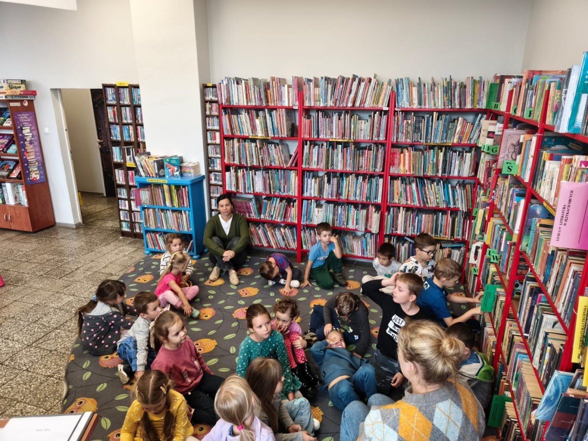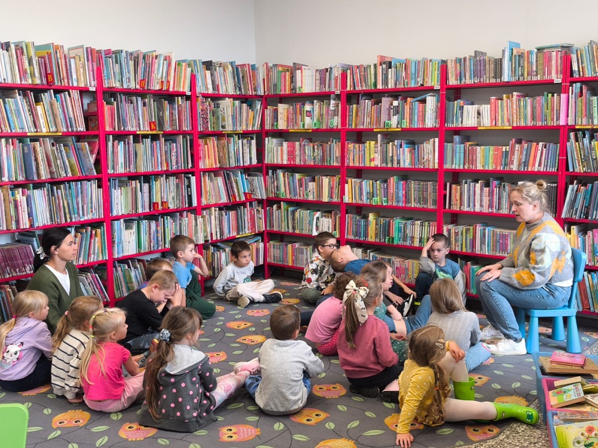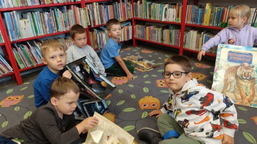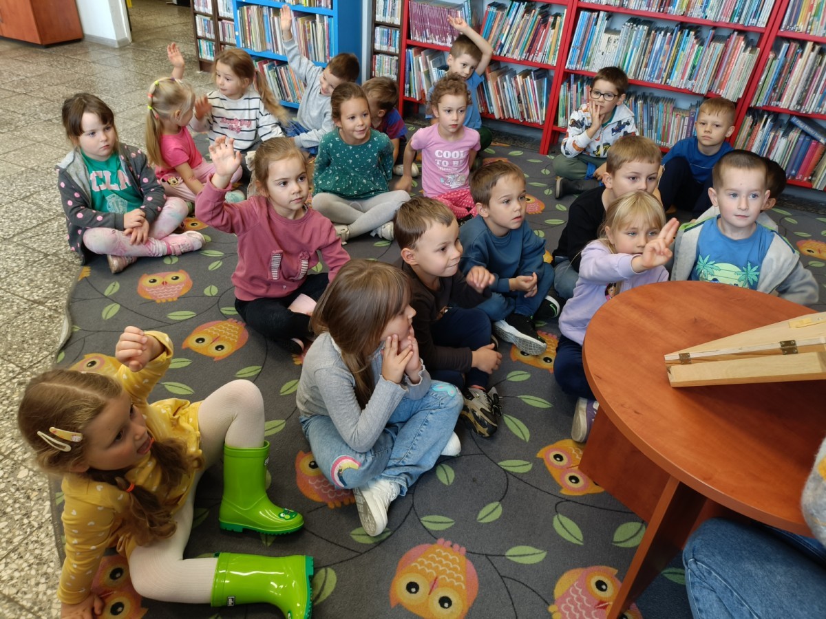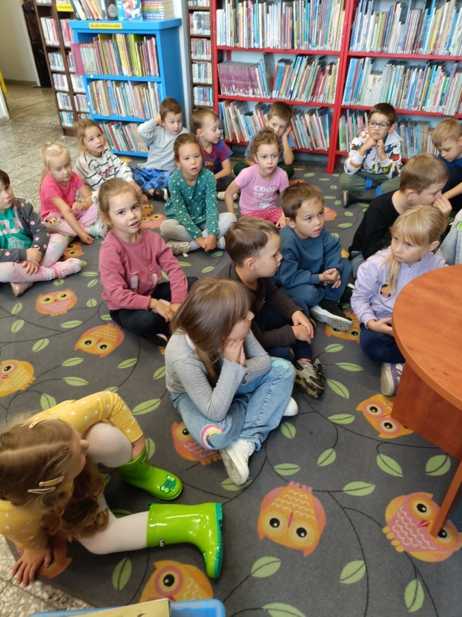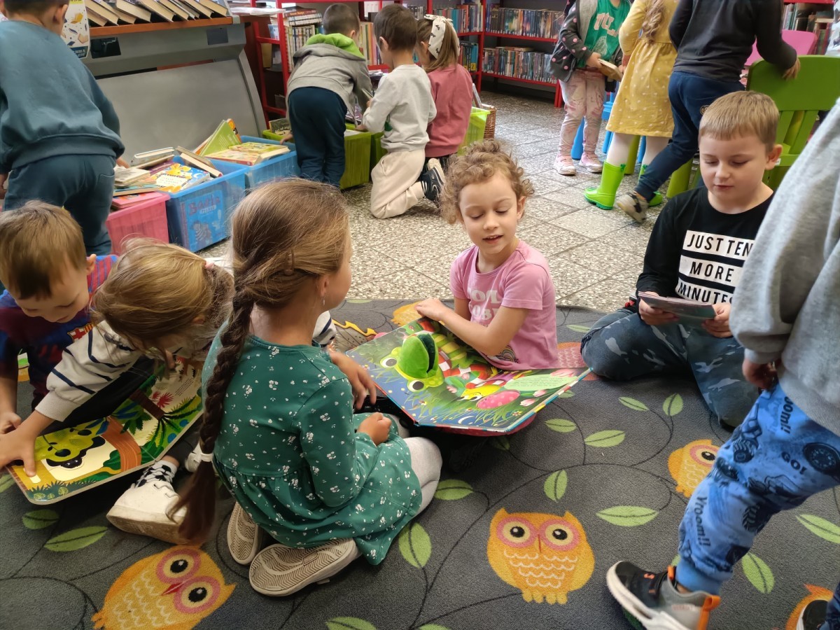 Grupa Starszaki w miniony czwartek wybrała się do Biblioteki na Złotych Łanach. Celem wyjścia było rozbudzenie zainteresowań czytelniczych dzieci, kształtowanie poczucia szacunku dla książek. Tam czekała na nas Pani Bibliotekarka, a przedszkolaki z wielką radością zapoznały się z magicznym dla nich miejscem. Pani opowiedziała nam co to jest biblioteka, jak się w niej zachowywać oraz jak wypożycza się książki, a na koniec wspólnie zwiedziliśmy budynek.