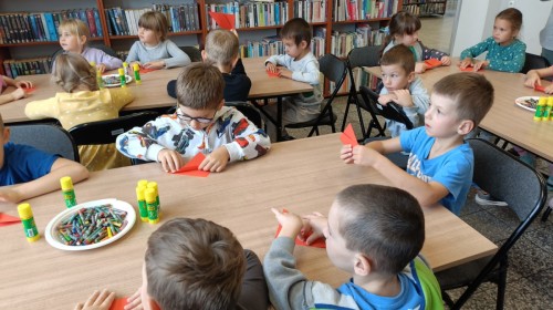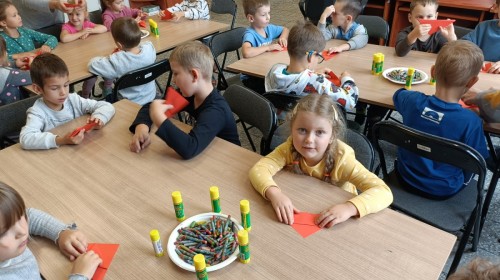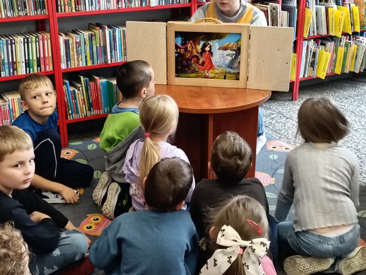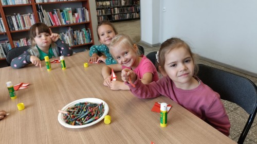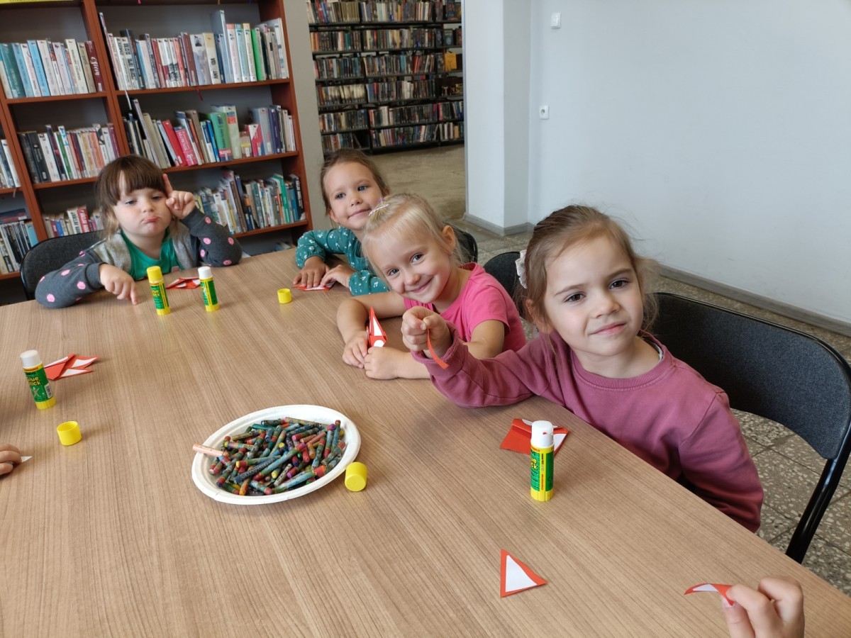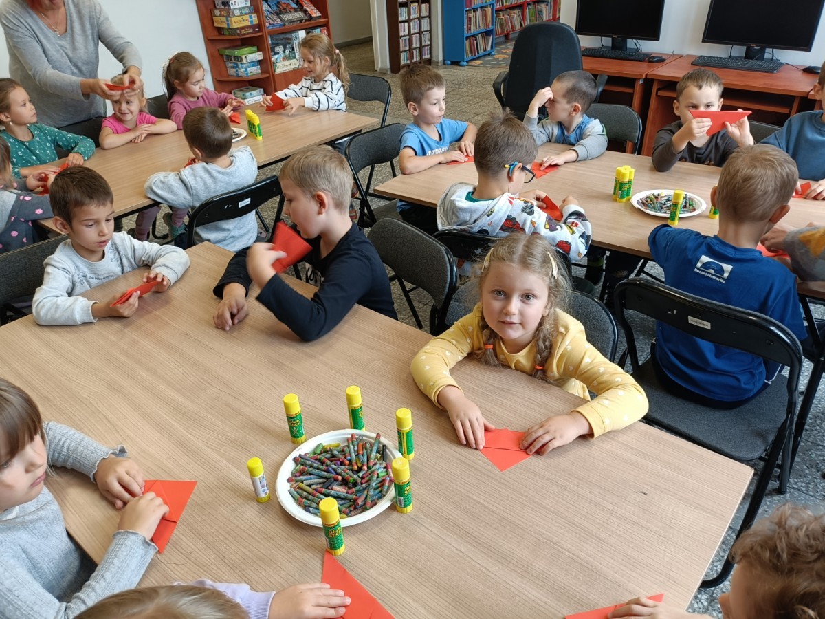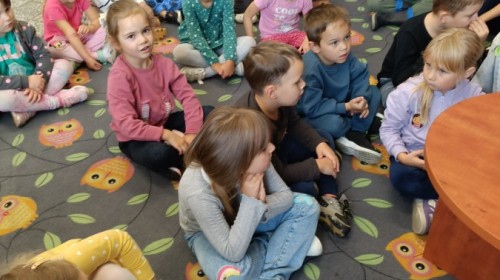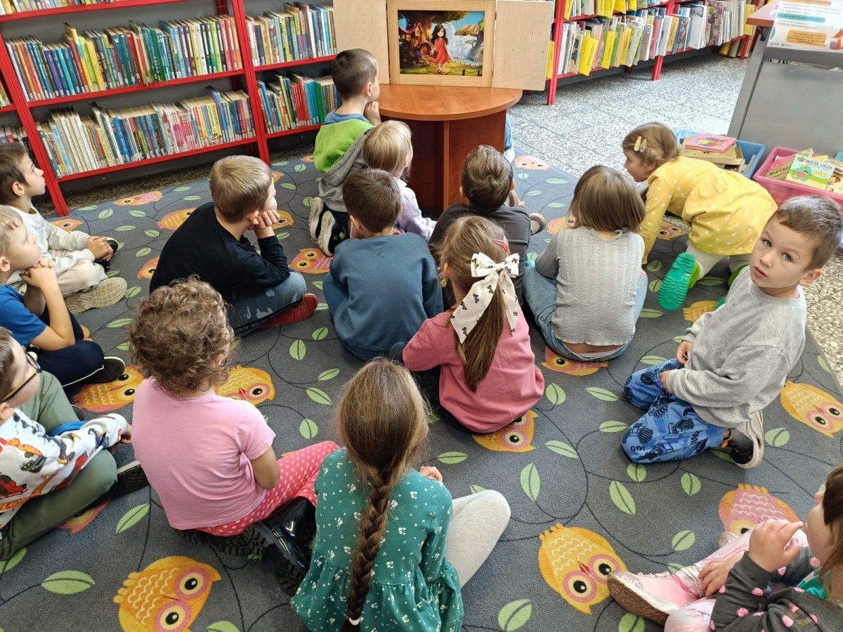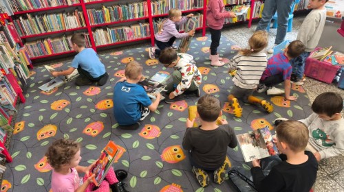 Grupa Starszaki w miniony czwartek wybrała się do Biblioteki na Złotych Łanach. Celem wyjścia było rozbudzenie zainteresowań czytelniczych dzieci, kształtowanie poczucia szacunku dla książek. Tam czekała na nas Pani Bibliotekarka, a przedszkolaki z wielką radością zapoznały się z magicznym dla nich miejscem. Pani opowiedziała nam co to jest biblioteka, jak się w niej zachowywać oraz jak wypożycza się książki, a na koniec wspólnie zwiedziliśmy budynek.